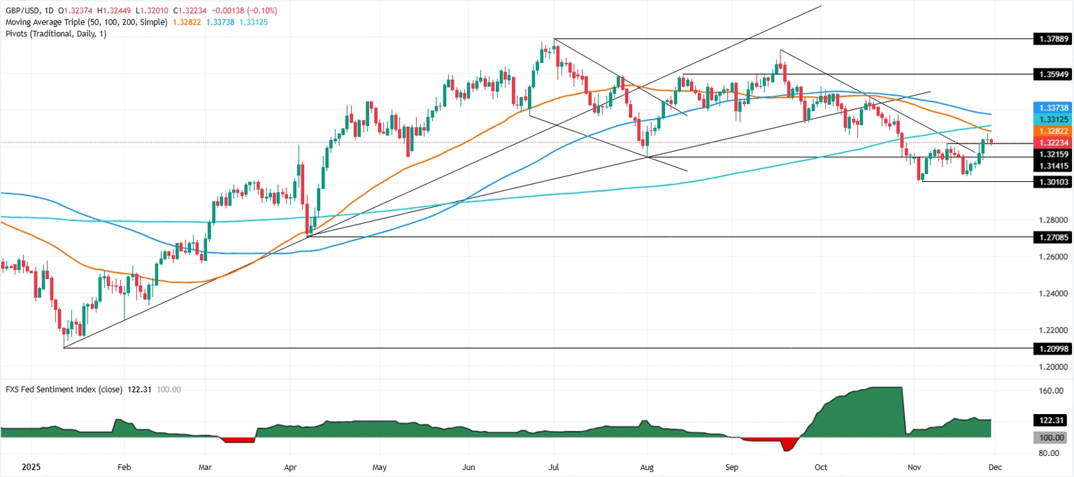 GBP/USD dips during the North American session on Friday, despite heading into the end of the week with gains of almost 1%, after the financial markets digest the Autumn Budget. The pair trades at 1.3221 after retreating from a daily high of 1.3244. Read More...