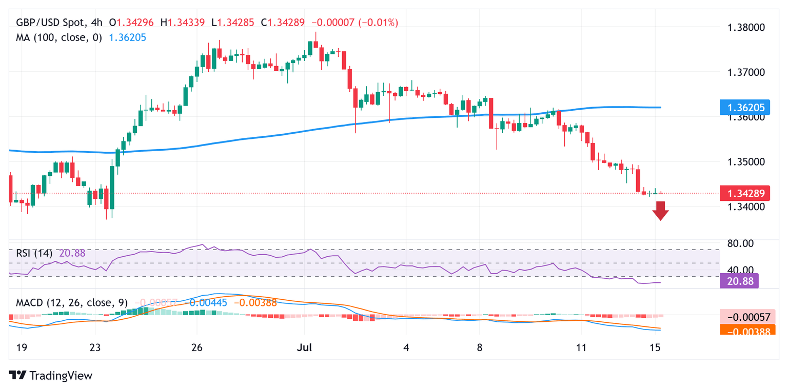 GBP/USD Price Analysis: Struggles near multi-week low, around 1.3430 ahead of US CPI