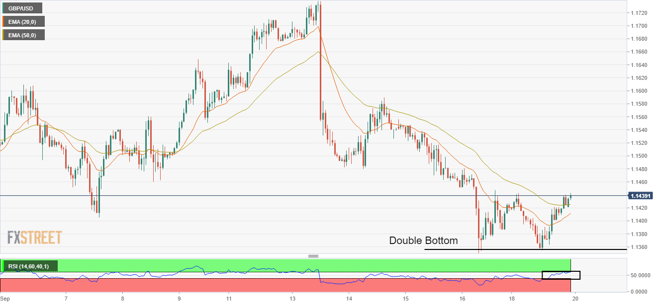 The GBP/USD pair has witnessed a firmer rebound after defending its two-year low at 1.1350, recorded last week. The cable has extended its gains after overstepping the round-level resistance of 1.1400 and has reached its critical hurdle of 1.1440. The rebound move seems full of confidence and is expected to stay in bullish territory for a while, however, the broader picture is extremely brutal.