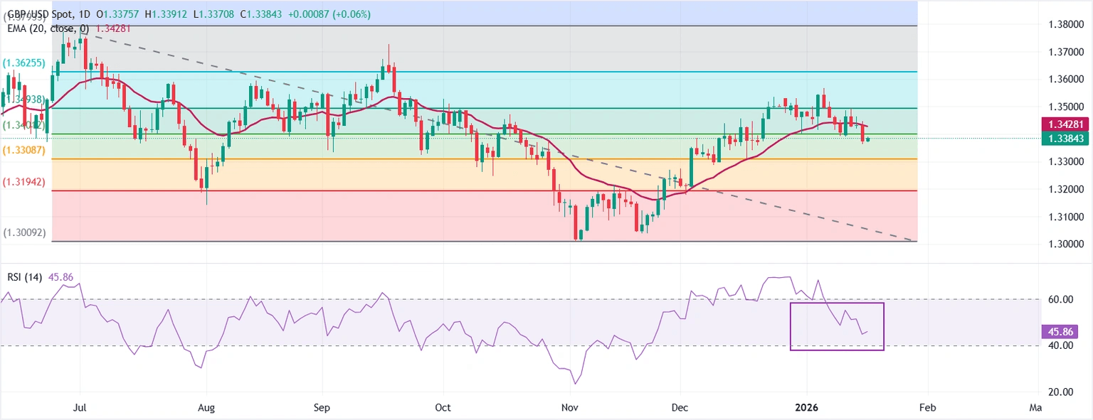 The Pound Sterling (GBP) trades with caution near its four-week low around 1.3360 against the US Dollar (USD) during the European trading session on Friday. The GBP/USD pair is under pressure as the US Dollar (USD) trades firmly amid expectations that the Federal Reserve (Fed) will pause its monetary-easing campaign in the monetary policy meeting later this month. Read More...