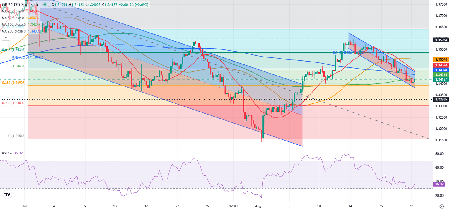 GBP/USD stabilizes slightly above 1.3400 in the European session on Friday after posting losses for four consecutive days and losing about 1% since the beginning of the week. Investors refrain from taking large positions ahead of Federal Reserve (Fed) Chair Jerome Powell's speech at the annual Jackson Hole Symposium.
