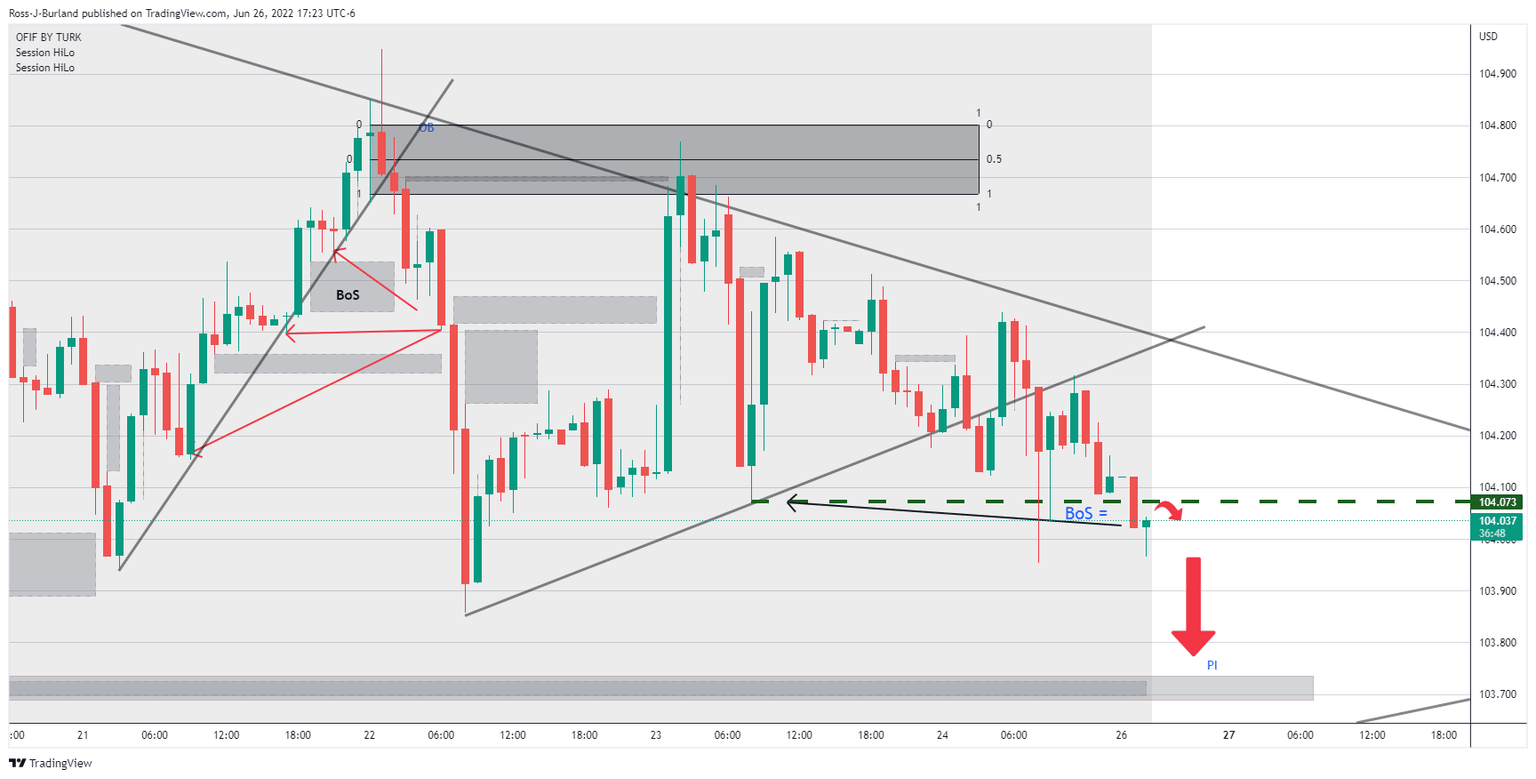 Where there is a price imbalance, PI, on a 4-hour perspective on the way there that guards an order block, OB, above it. At 1.2292, GBP/USD is up 0.16% as the US dollar falls away below a key structure on the DXY chart. The US dollar is extending the downside after it slipped on Friday and posted its first weekly decline this month.