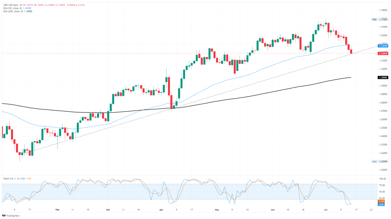 GBP/USD shed weight for the eighth straight session on Tuesday. Global risk appetite soured after US Consumer Price Index (CPI) inflation rose in June, casting a long, tariff-fueld shadow over investors that were hoping for a quick pivot into fresh rate cuts from the Federal Reserve (Fed) in the third quarter.