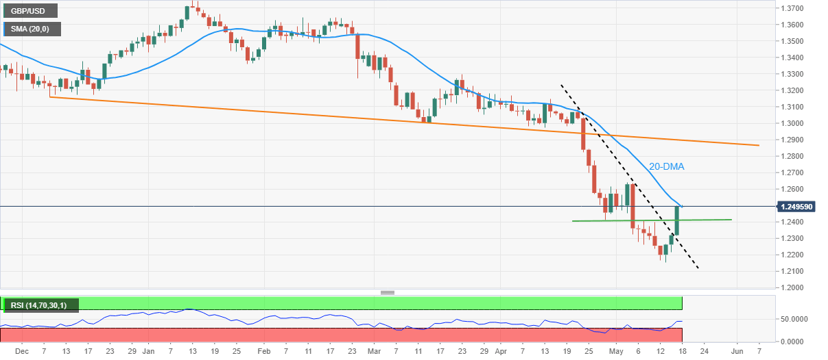 GBP/USD Price Analysis: 20-DMA probes bulls near 1.2500 ahead of UK inflation
