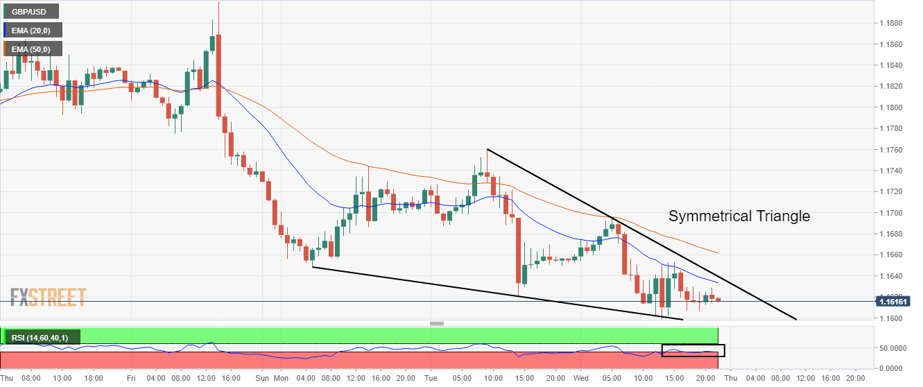 The GBP/USD pair is displaying back-and-forth moves in a narrow range of 1.1609-1.1623 in the early Tokyo session. The cable has turned sideways after defending the critical support of 1.1600. Broadly, the asset is oscillating in a wider range of 1.1607-1.1645 and is likely to display volumes and wider ticks.