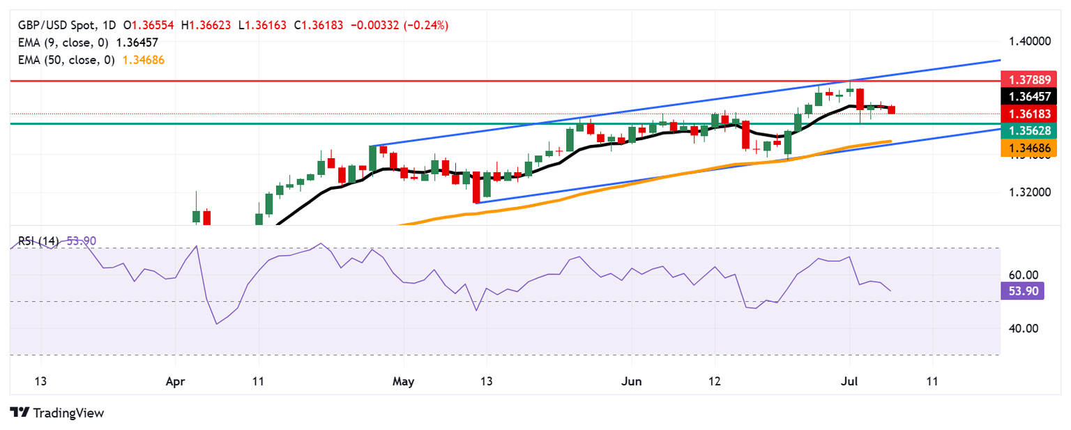 GBP/USD Price Forecast: Falls toward 1.3600 after breaking below nine-day EMA