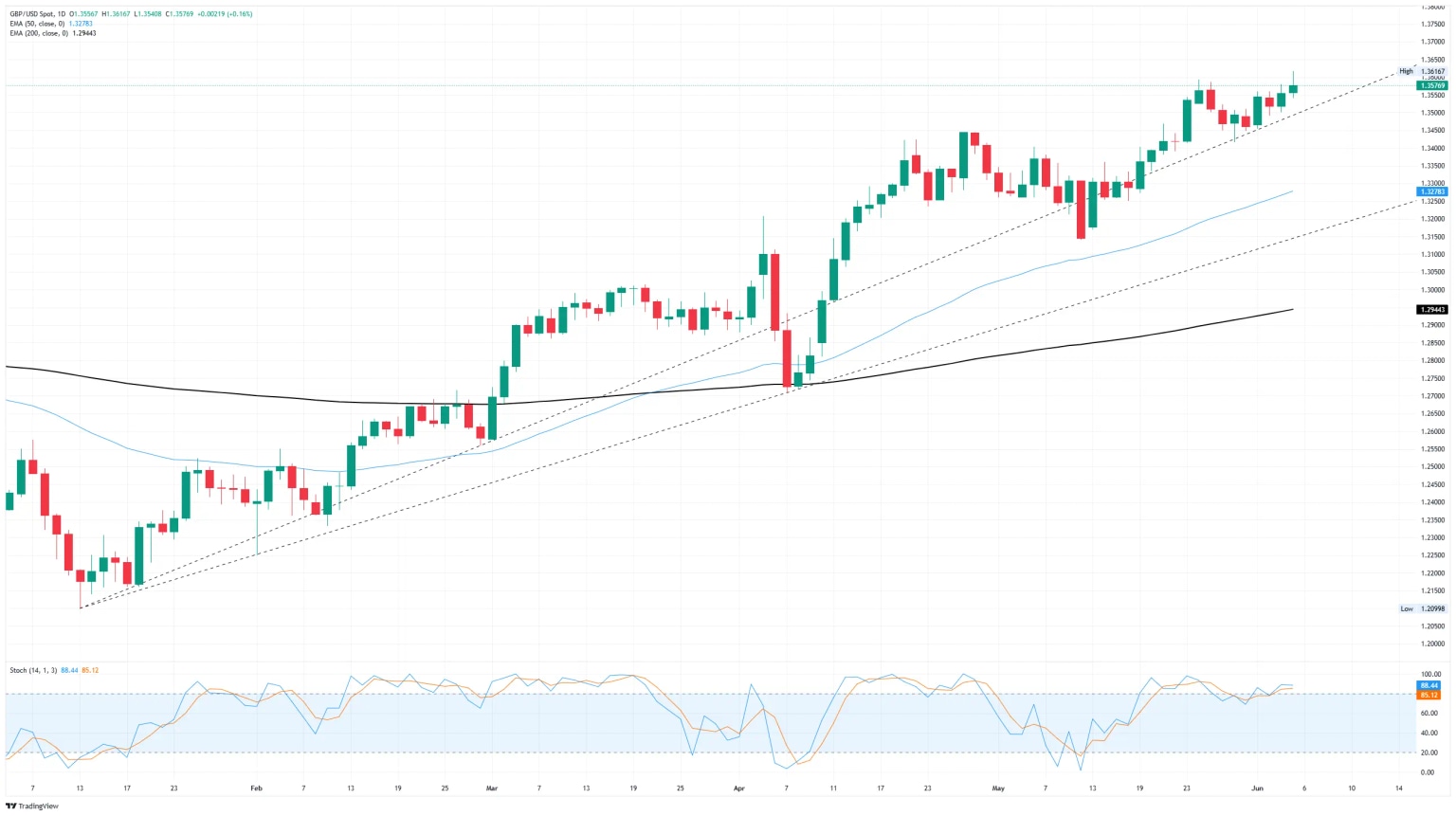 GBP/USD tested its highest bids in over three years on Thursday, briefly climbing above the 1.3600 handle in intraday trading for the first time in 40 months. Bullish momentum remains tepid, however, with investor sentiment getting hobbled by approaching US Nonfarm Payrolls (NFP) jobs data due on Friday, as well as a rapidly-accelerating blowout between US President Donald Trump and his (now former) right-hand hatchet man Elon Musk.