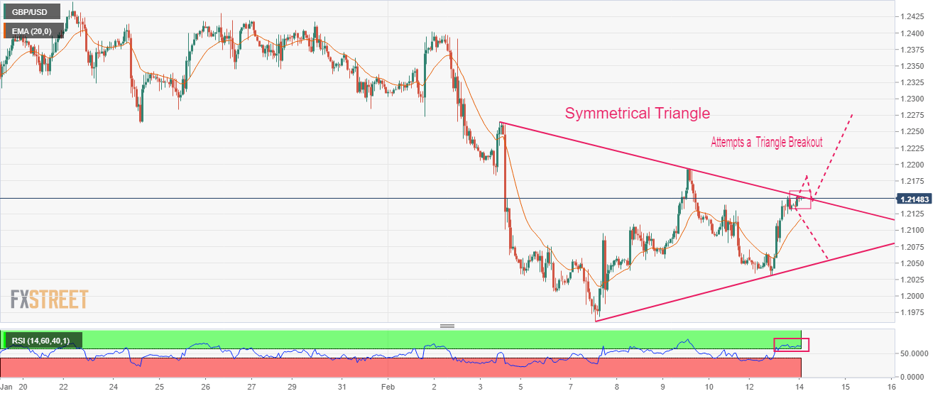 The GBP/USD pair has refreshed its day’s high above the critical resistance of 1.2150 in the Asian session. The Cable has picked strength amid the improved risk appetite of investors after they digested the United States inflation-inspired anxiety.