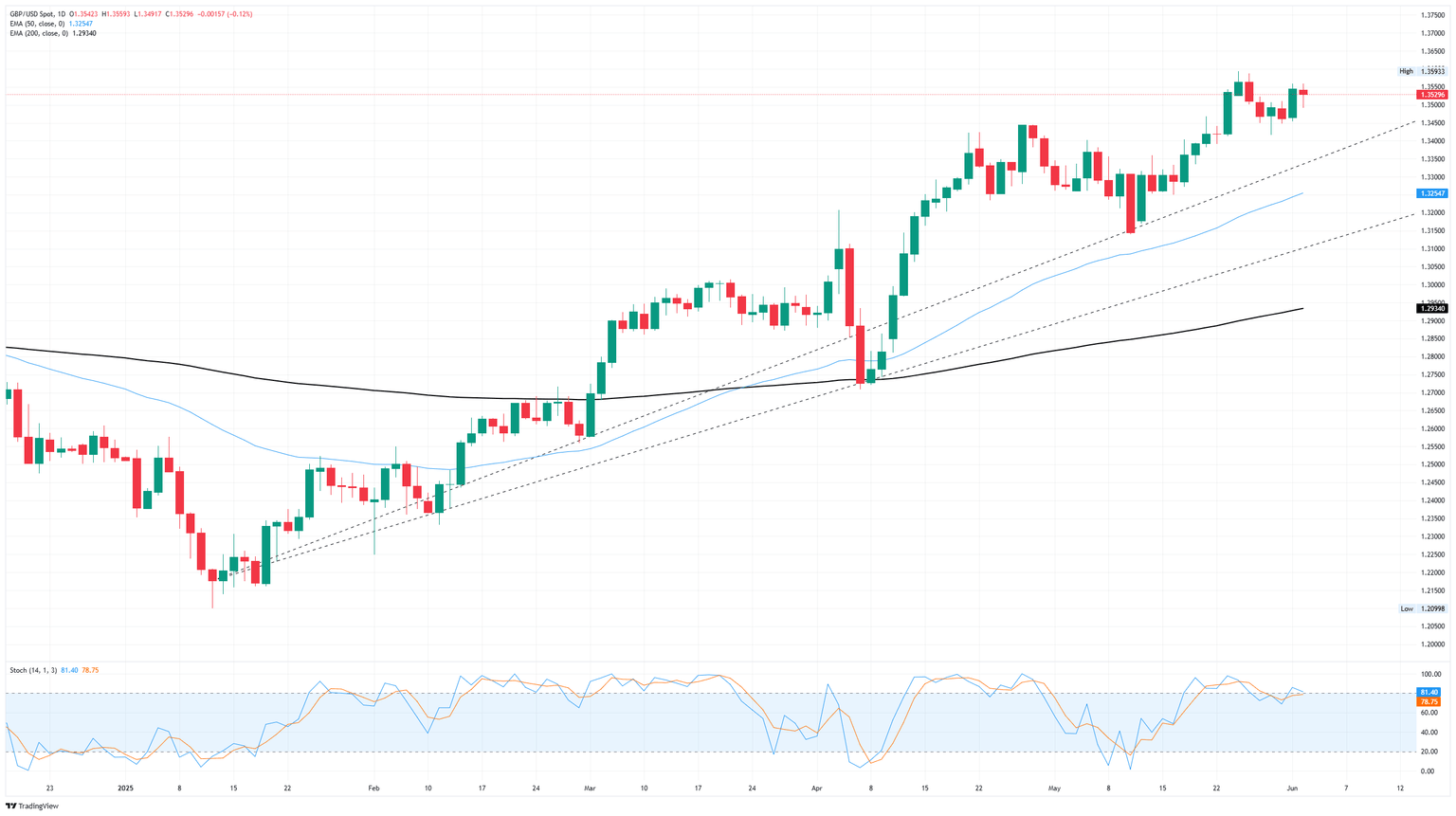 GBP/USD remains above 1.3500 as US Dollar comes under pressure from "Sell America" trend