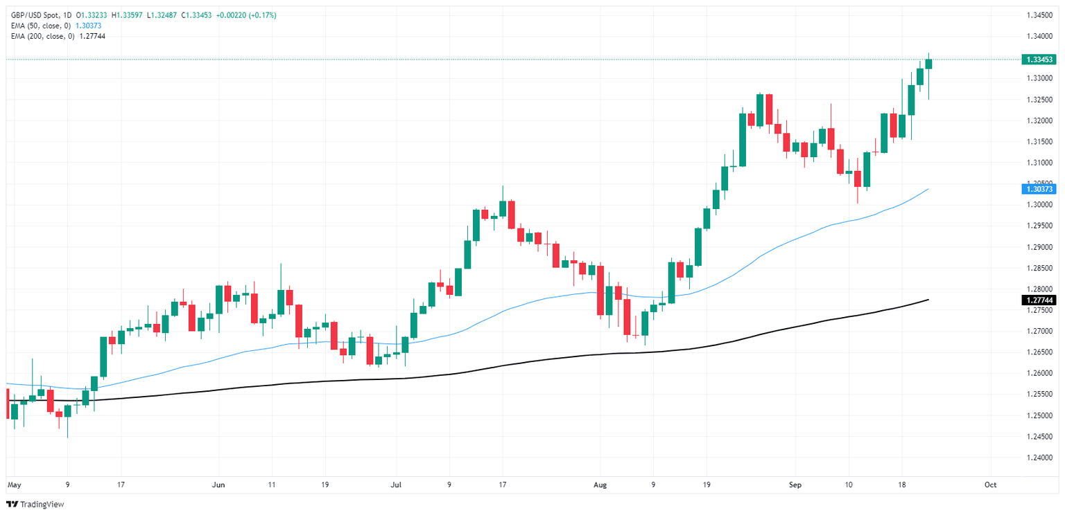 GBP/USD remains near 1.3350, close to its 31-month highs