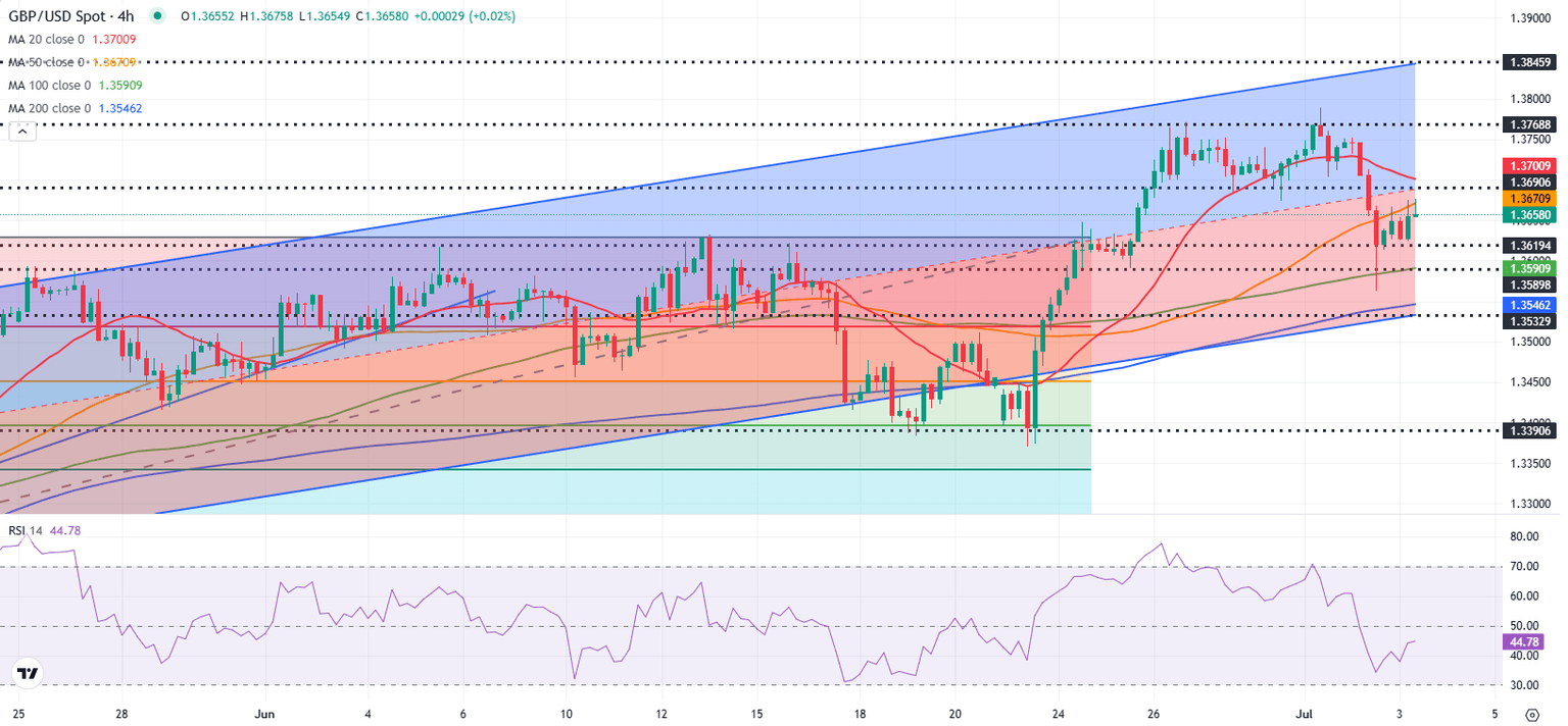 GBP/USD came under heavy bearish pressure on Wednesday and lost about 0.8%. The pair stages a rebound early Thursday but trades well below 1.3700. Markets will keep a close eye on political developments in the UK and scrutinize the June employment report from the US.
