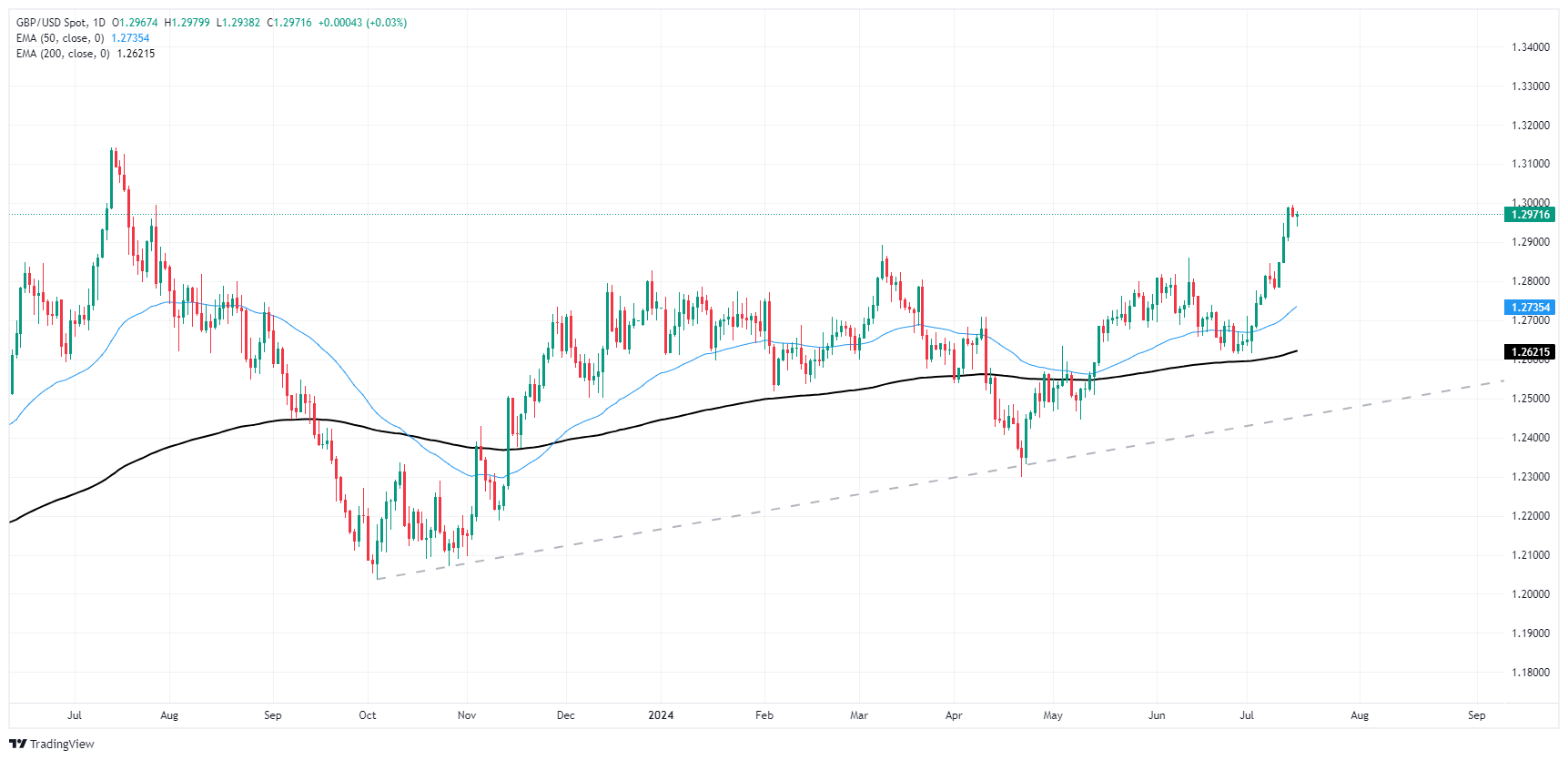 GBP/USD churned close to recent highs on Tuesday as markets readjusted odds of a rate cut from the Federal Reserve (Fed). A decline in US Retail Sales capped off a recent batch of US data, implying price pressures have finally eased enough that the Fed may get pushed into a rate-cutting cycle in September.