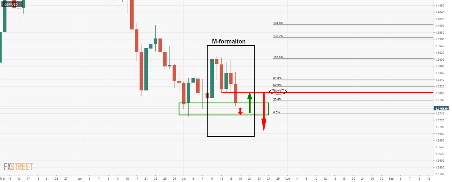 GBP/USD has started out the week on the back foot as the price drops near to 0.5%. Cable has fallen from a high of 1.3862 and met a low of 1.3755 in Tokyo. The bears are in charge as investors fret over the rise of the delta variant in the UK and overseas, and GBP was poised for a weekly loss of 0.8%, its worst since mid-June.