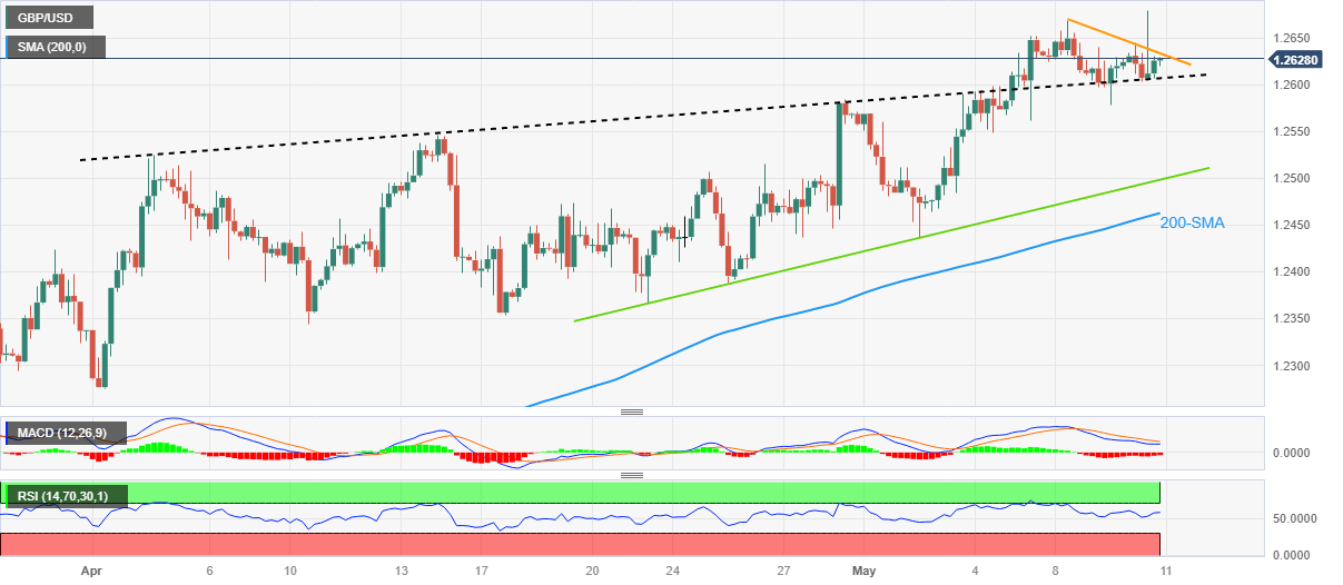 GBP/USD bulls take a breather around 1.2630 amid the early hours of the Bank of England (BoE) inspired “Super Thursday”. That said, the Cable pair rose to a 13-month high the previous day while bouncing off the resistance-turned-support line stretched from early April.