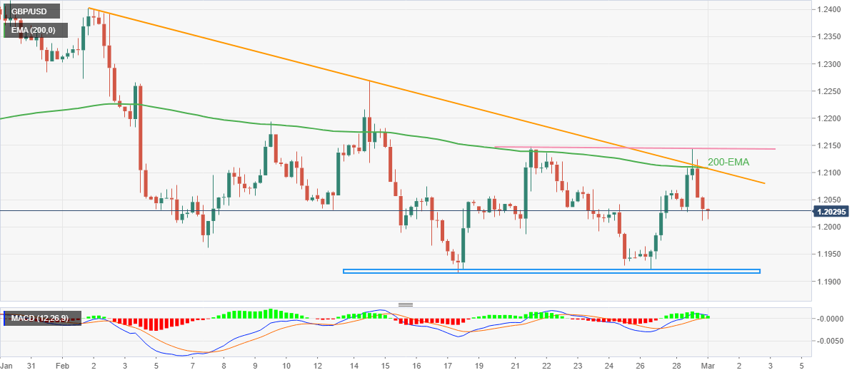 GBP/USD picks up bids to reverse the previous day’s pullback from the 50-DMA, around 1.2035 during the initial hours of Wednesday’s Asian session. The Cable pair rose to the highest levels in a week earlier on Tuesday before reversing from 1.2143 as optimism surrounding the Brexit deal and the pair’s strength from softer US data faded as the key March month begins.