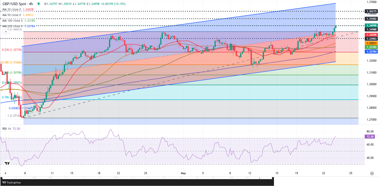 After struggling to find direction on Thursday, GBP/USD extends its weekly uptrend and trades at its highest level since February 2022 near 1.3500 in the European morning on Friday. The technical outlook points to overbought conditions but the pair's correction attempts could remain short-lived.