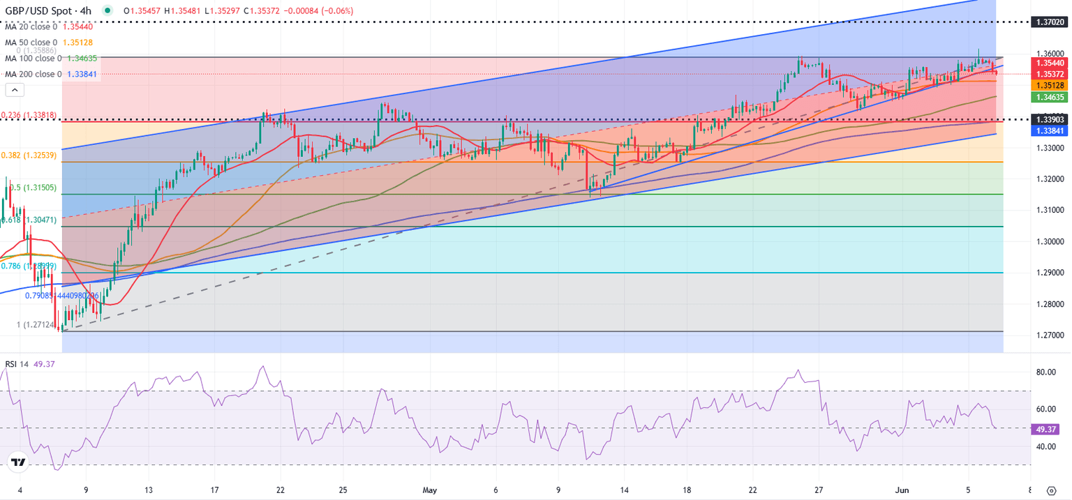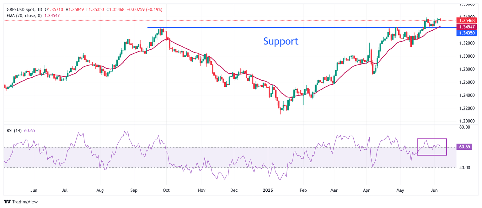 GBP/USD edges lower on Friday and trades below 1.3550 after touching its highest level since February 2022 above 1.3600. The May employment report from the US could influence the US Dollar's (USD) valuation and drive the pair's action heading into the weekend.
