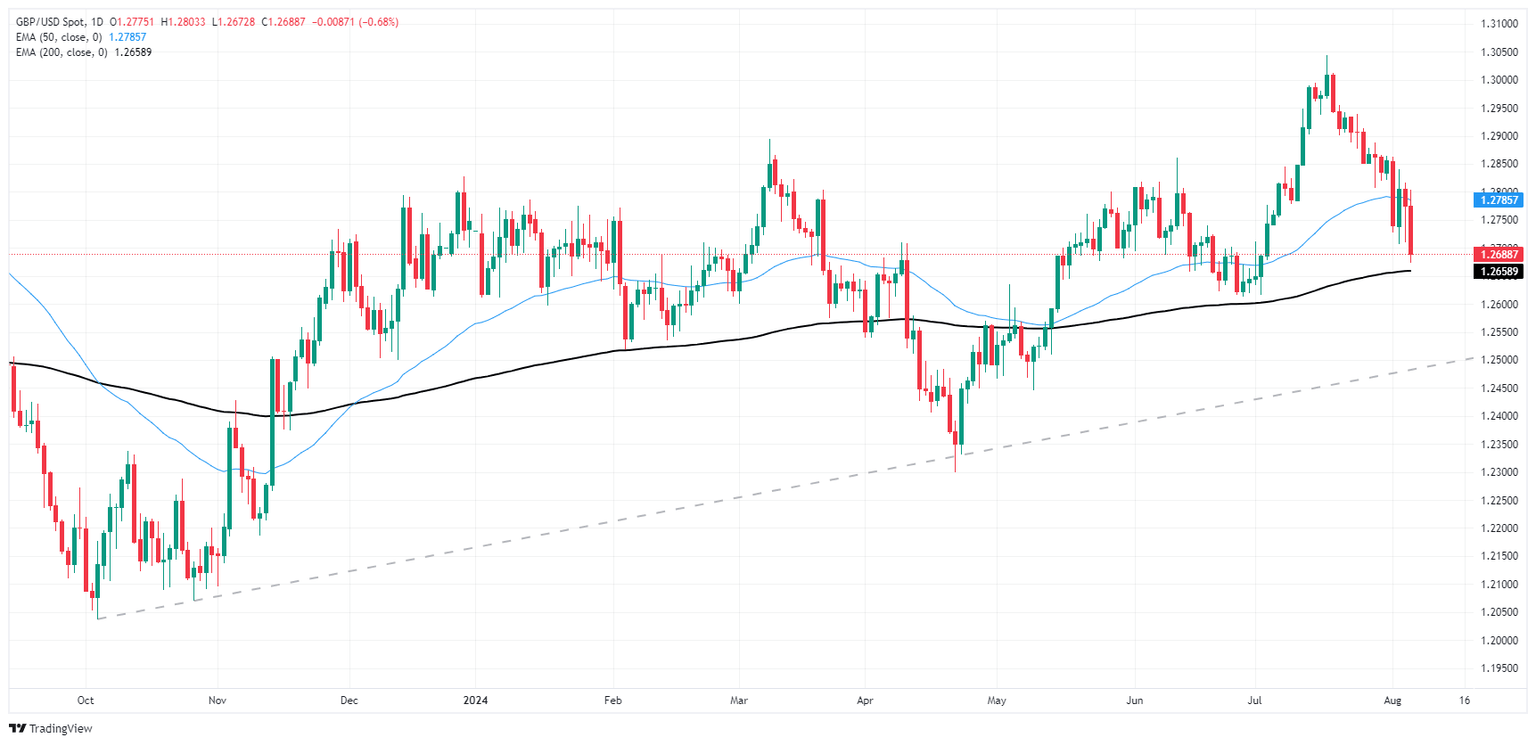 GBP/USD backslid nearly a full percent on Tuesday as the Pound Sterling continues to deflate against the broader FX market. The US Dollar found a soft patch as markets pivot back into a risk-on stance fueled by ongoing hopes for a September rate cut from the Federal Reserve (Fed), but a rapidly-depreciating GBP sent Cable into fresh five-week lows just south of 1.2700.