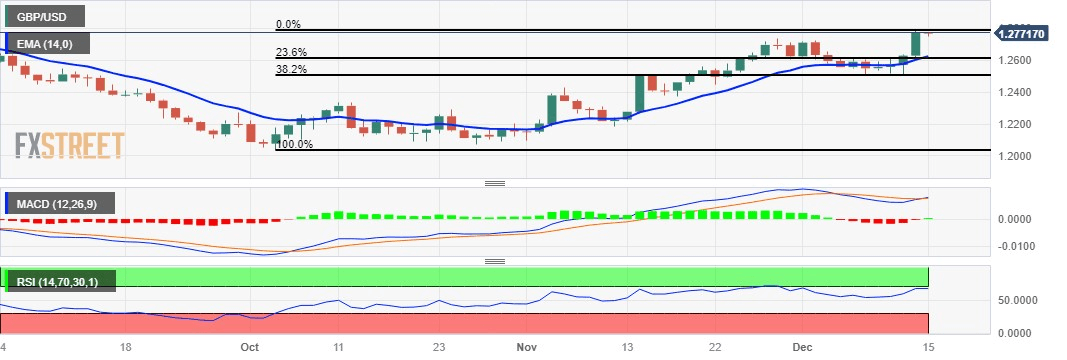 GBP/USD grapples to continue its winning streak that began on Monday, trading around 1.2770 during the Asian hours on Friday. The GBP/USD pair receives a boost from the hawkish stance of the Bank of England (BoE).