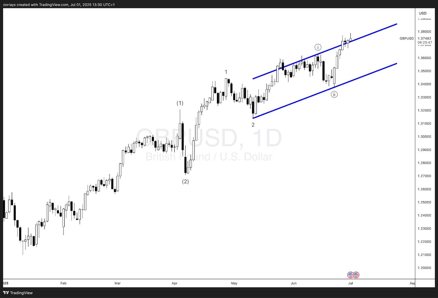 The current structure in GBP/USD (1D) suggests we are in the early stages of wave ((iii)) of 3 of (3) on a higher degree impulse cycle. The internal count from the wave (2) low clearly delineates wave (1)-(2), followed by wave 1-2 within wave (3), setting the stage for the heart of the move — wave ((iii)).