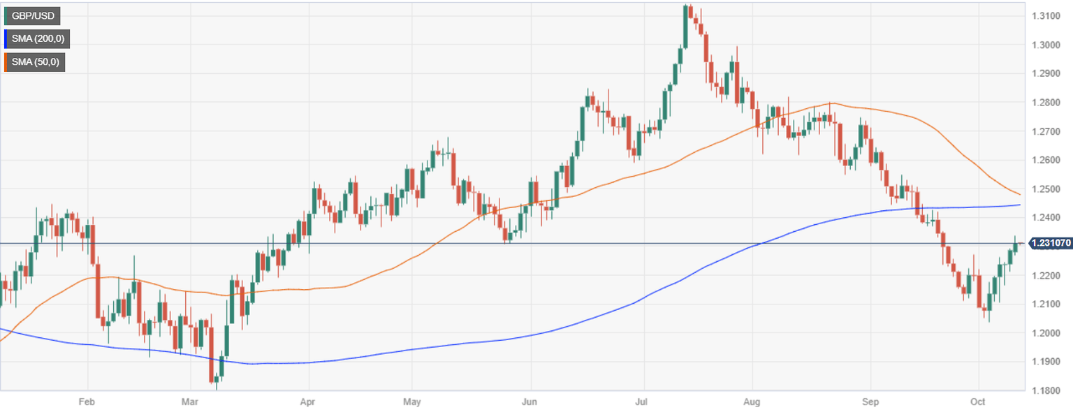 GBP/USD Price Analysis: Oscillates near 1.2310, as the formation of a death-cross loom