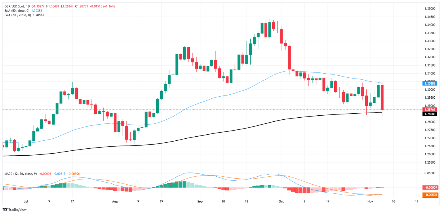 GBP/USD tumbled back below the 1.2900 handle on Wednesday as markets splurged on Greenback bids following the one-sided outcome of the US presidential election. The Bank of England (BoE) and the Federal Reserve (Fed) are both due to deliver matching quarter-point rate cuts on Thursday.