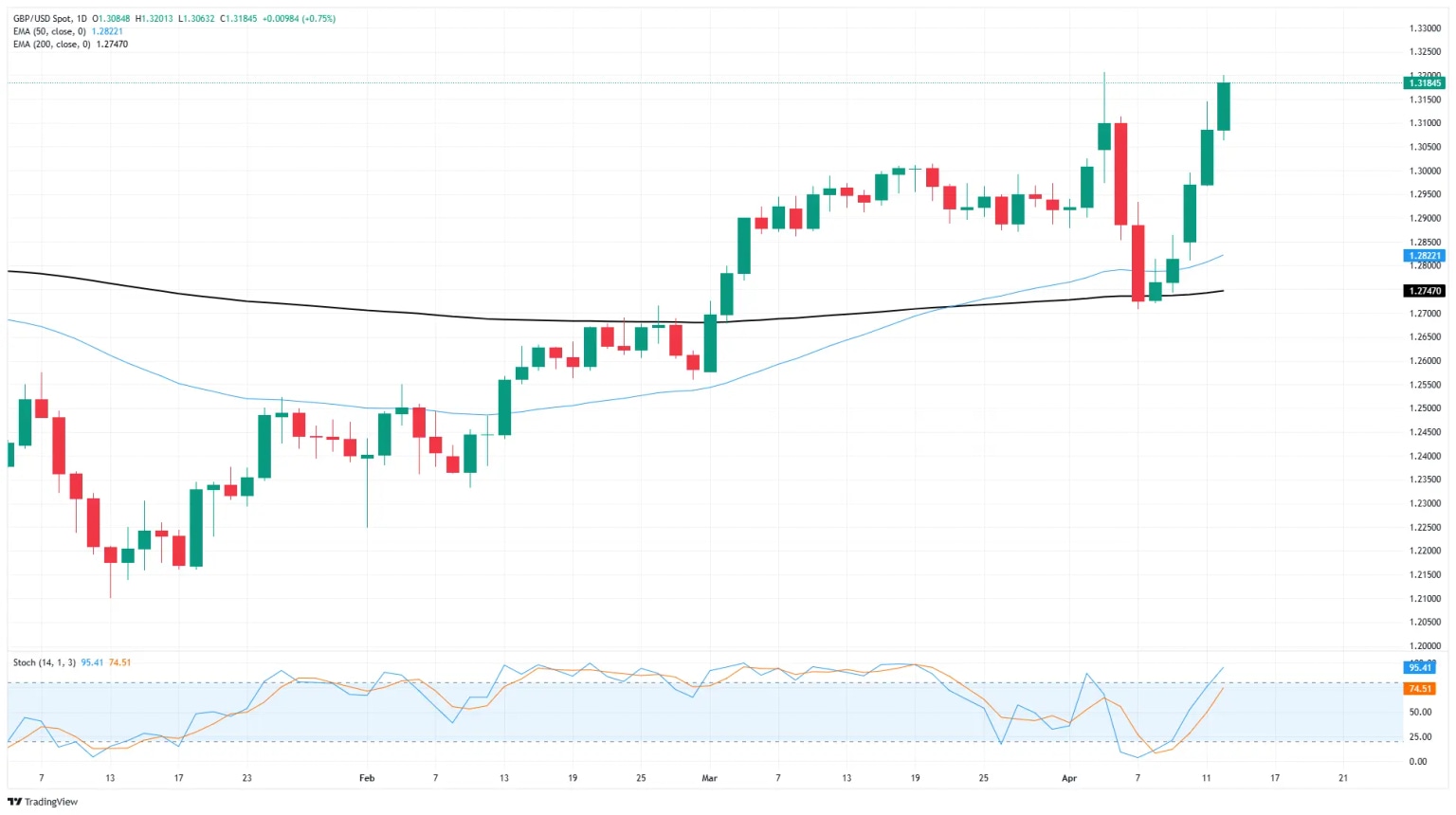 Investors remain concerned about the potential economic fallout from the escalating US-China trade war. In fact, China increased its tariffs on US imports to 125% on Friday in retaliation to US President Donald Trump's decision to raise duties on Chinese goods to an unprecedented 145%. The US still imports several hard-to-replace materials from China and the development weakens confidence in the US economy, which, in turn, keeps the USD bulls on the defensive and lends support to the GBP/USD pair. Read more...