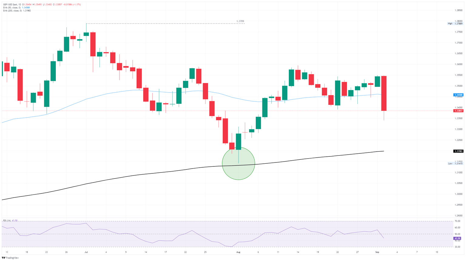 GBP/USD tumbled sharply on Tuesday, declining over 1.15% and sinking back below the 1.3800 handle for the first time in almost a month. Broad-market investor sentiment soured heading into the September trading month, with safe-haven flows into the US Dollar (USD) surging.