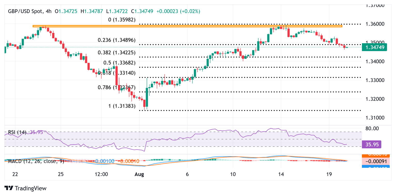 GBP/USD tumbles during the North American session with traders shrugging off high inflation in the UK as the White House pressures Fed Governor Lisa Cook to step aside from the board. The pair trades at 1.3469, down 0.15%. Read More...