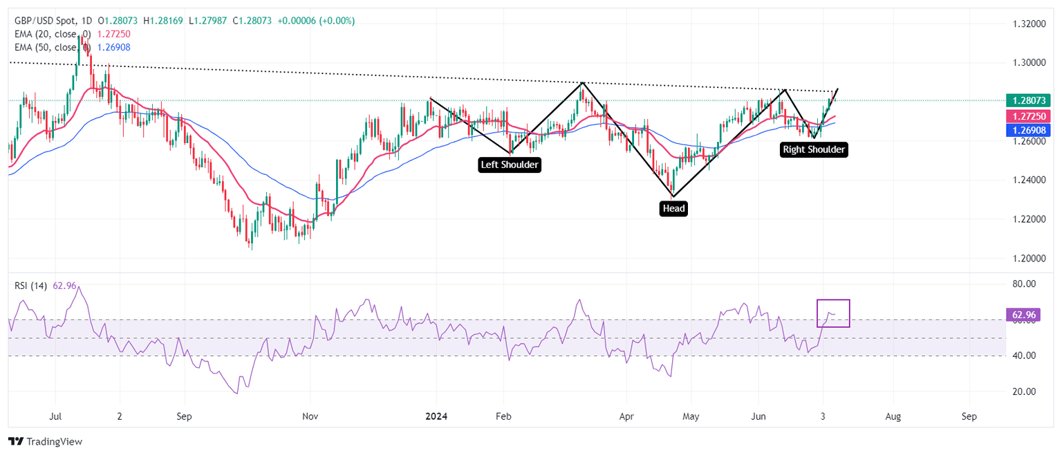 The Pound Sterling (GBP) ranges above 1.2800 against the US Dollar (USD) in Tuesday’s American session. The GBP/USD pair turns quiet as investors await the