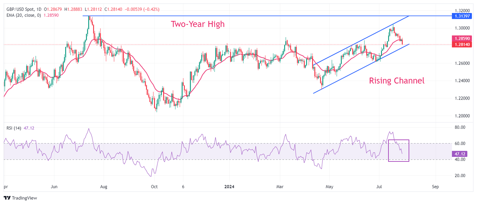 The GBP/USD pair trades on a stronger note around 1.2875 during the early European trading hours on Monday. The softer Greenback amid the hope of an interest rate cut by the US Federal Reserve (Fed) in September provides some support to the major pair. The US Federal Reserve (Fed) Interest Rate Decision will be to highlight on Wednesday, with no change in rate expected. Read More...