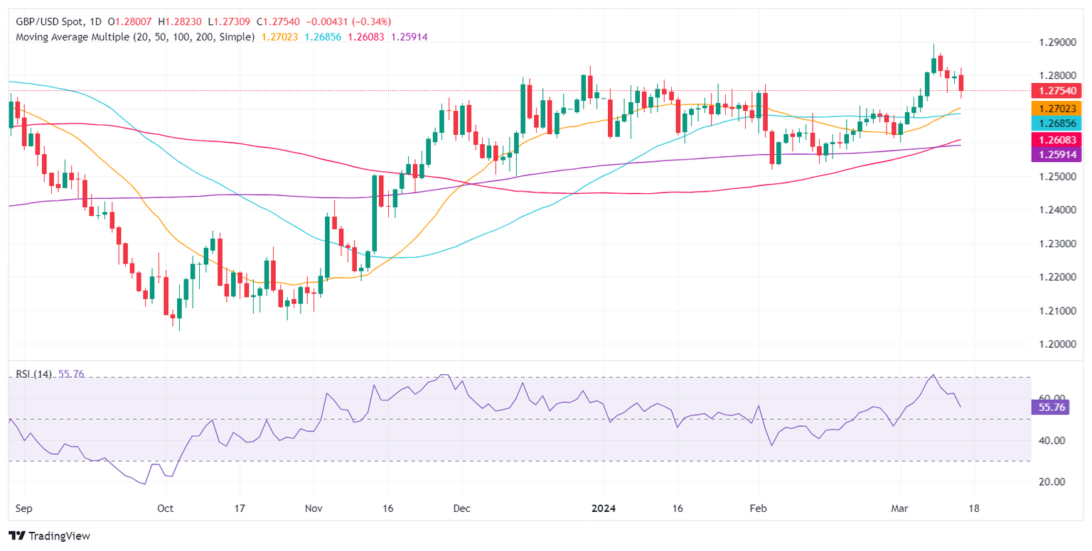 The GBP/USD pair continues with its struggle to gain any meaningful traction and extends its consolidative price move around the 1.2800 mark for the second successive day on Thursday. The setup, meanwhile, seems tilted in favour of bullish traders and warrants some caution before positioning for an extension of the recent pullback from the vicinity of the 1.2900 round figure, or the highest level since July 2023 touched last week.