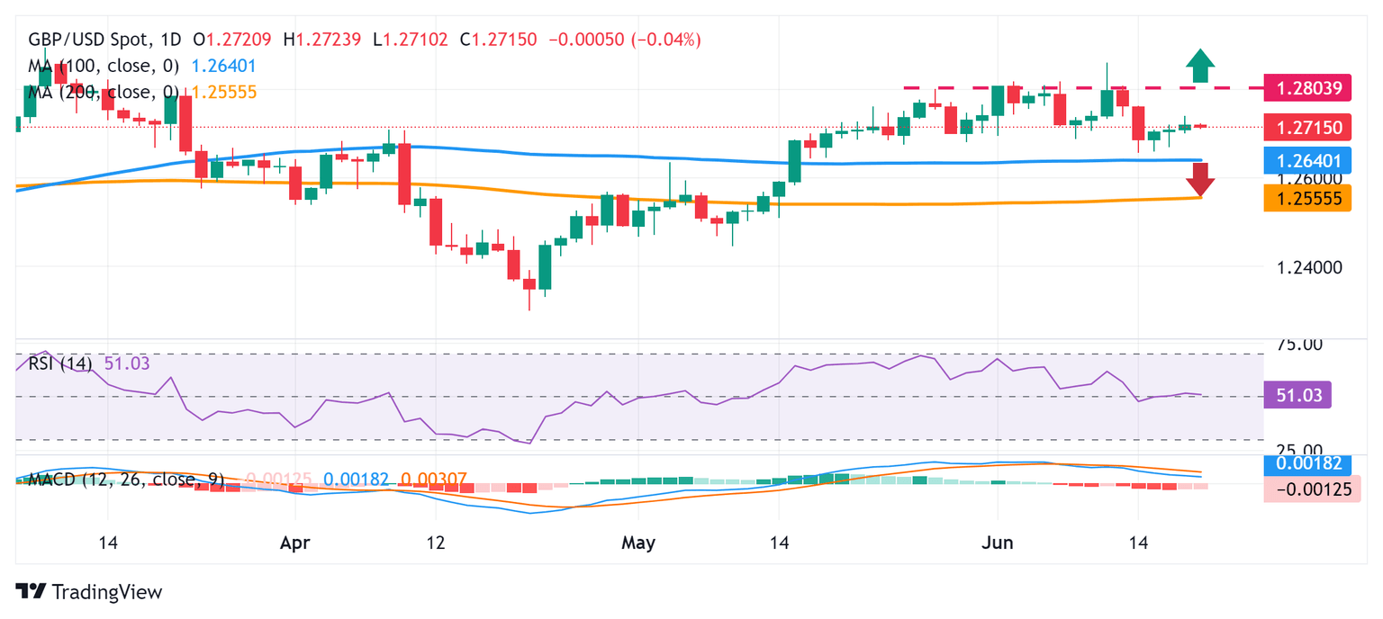 GBP/USD Price Analysis: Consolidates above 1.2700 mark as traders await BoE policy update