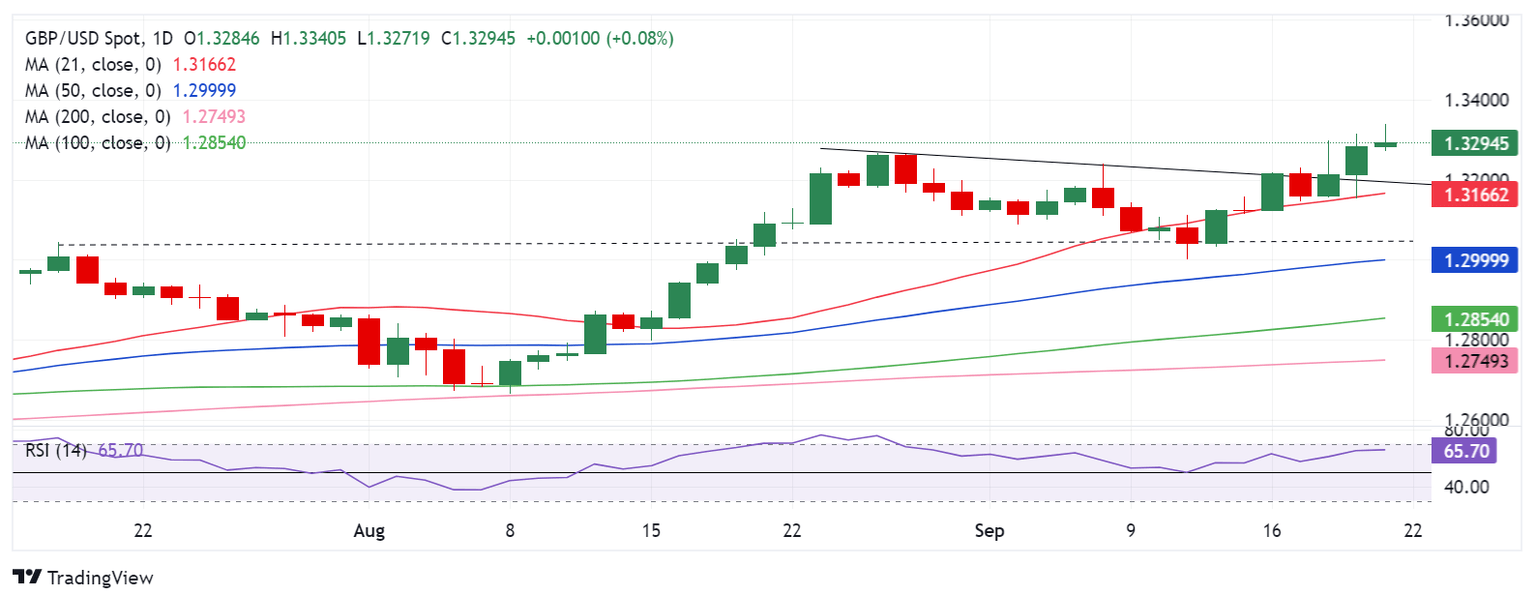 The Pound Sterling (GBP) extended its hold against the US Dollar (USD) after the previous week’s resurgence, as the GBP/USD pair tapped the highest level since March 2022 above 1.3300.The bullish potential remained intact for the GBP/USD pair, as the Pound Sterling capitalized on the monetary policy divergence between the Bank of England (BoE) and the US Federal Reserve (Fed), underscored in the central banks’ bonanza week. Read more...