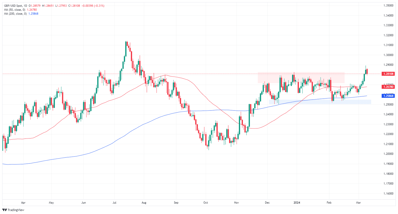 GBP/USD pared away some gains on Monday, falling from 1.2860 back into the 1.2800 price handle as markets trim rate cut expectations from the Bank of England (BoE). According to the Union Bank of Switzerland (UBS), the BoE is expected to deliver a first rate trim in August versus the previously-expected May.