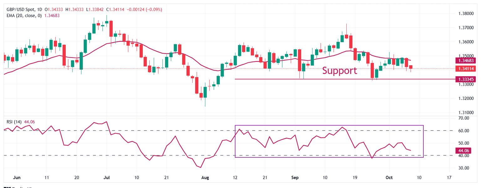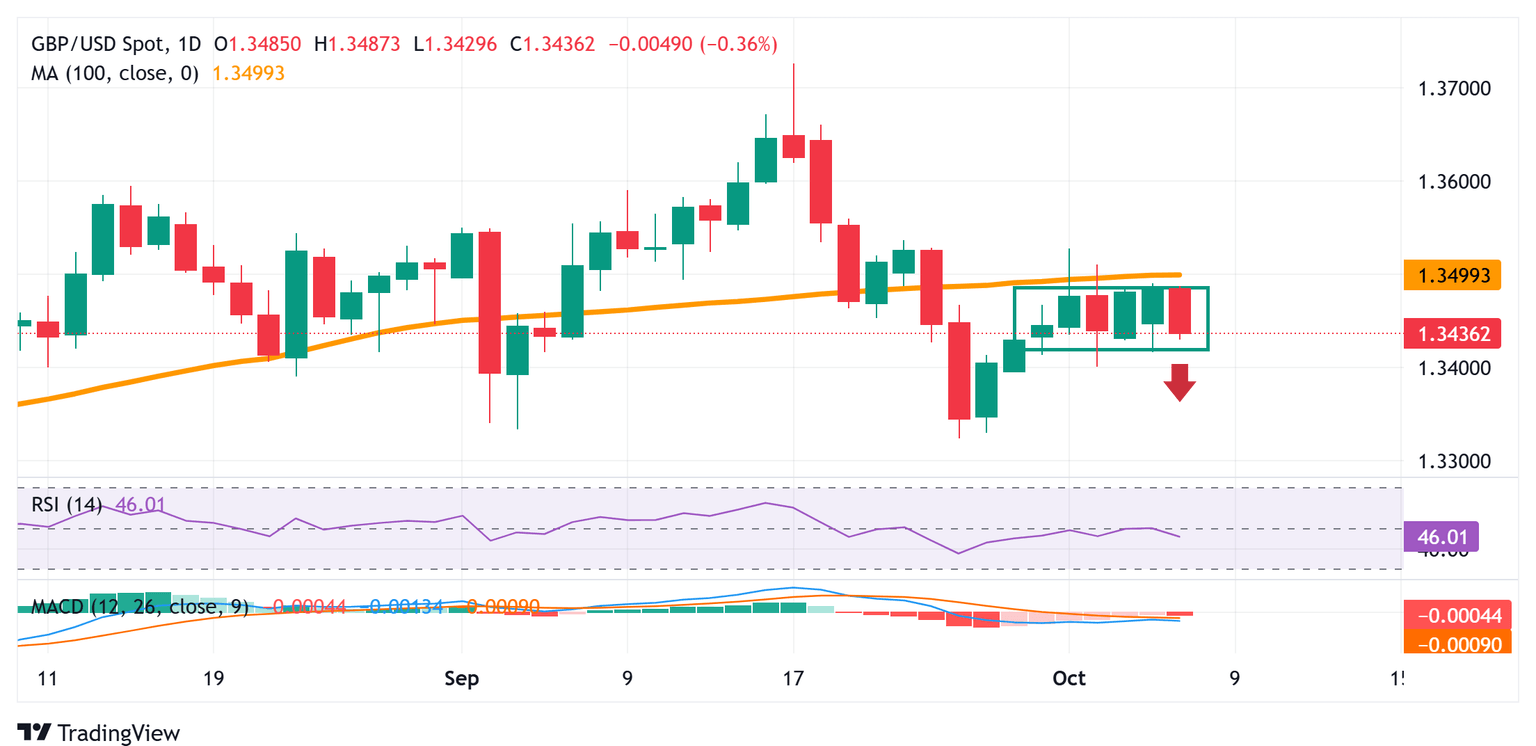 The Pound Sterling (GBP) seems fragile near 1.3400 against the US Dollar (USD) during the late European trading session on Wednesday. The GBP/USD pair faces selling pressure as the US Dollar (USD) outperforms its major currency peers despite the United States (US) government entering its second week of shutdown.