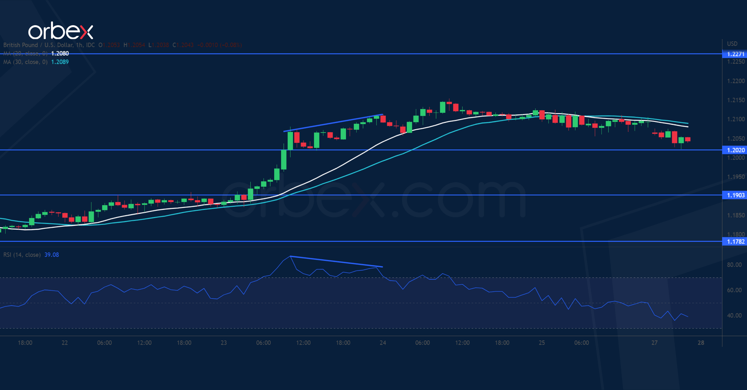 The pound holds onto its gains after the PPI for October was revised upwards. As the pair approaches the August high of 1.2270, a bearish RSI divergence is a warning sign that the rally may be running out of juice. Profit-taking could be expected in this major supply area while those who hold a bearish view in the medium-term may look to sell.