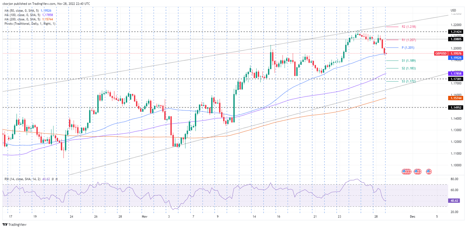 The GBP/USD moved downward on Monday, spurred by tensions arising in China due to Covid-19 zero-tolerance restrictions. US central bankers foresee a 2023 year of high-interest rates as they commit to higher for longer bolstered the US Dollar (USD). At the time of writing, the GBP/USD is trading at 1.1957, below its opening price by 0.07%, as the Asian session begins.