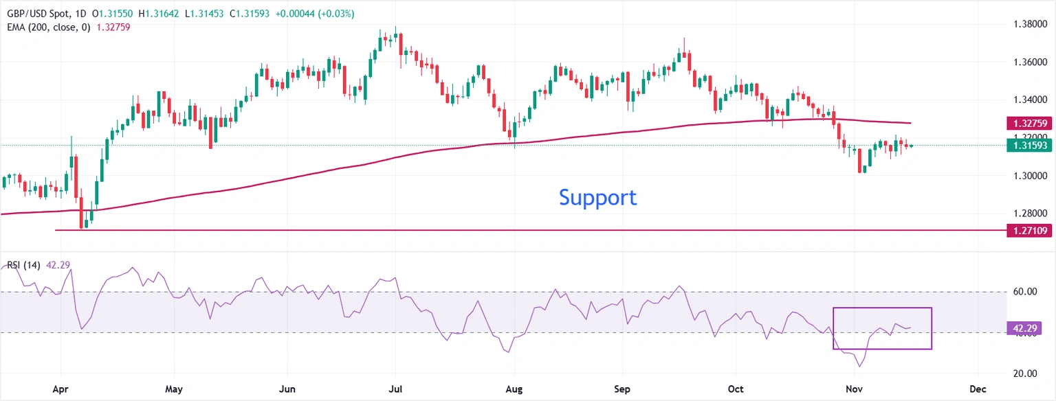 GBP/USD remains subdued around 1.3150 as UK Chancellor Reeves abandons tax rises