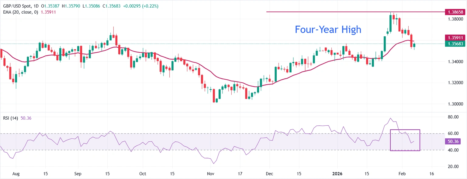 GBP/USD Price Forecast: Trades above 1.3500 after rebounding from 50-day EMA