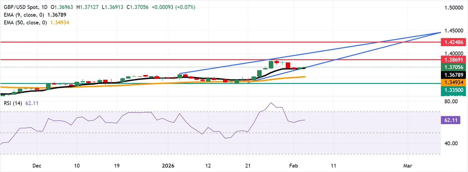 GBP/USD Price Forecast: Steadies above 1.3700 near nine-day EMA support