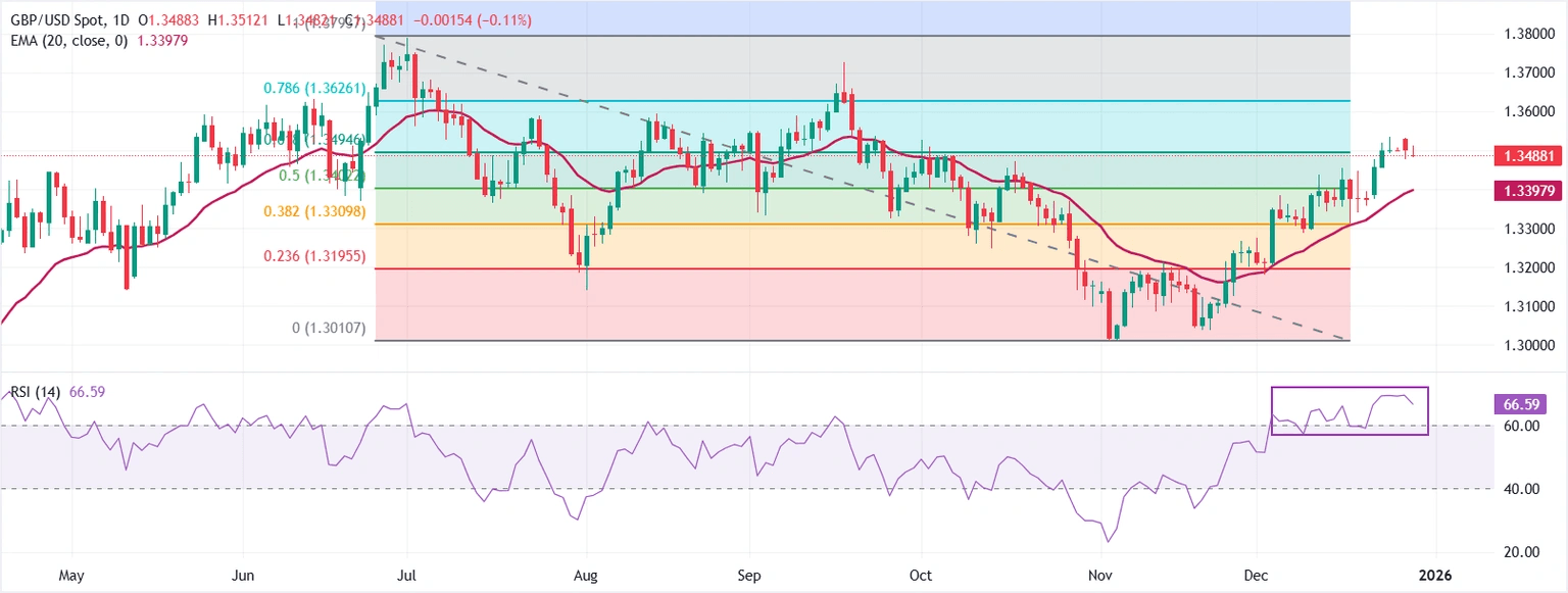 GBP/USD Price Forecast: Softens below 1.3500 but retains positive technical outlook