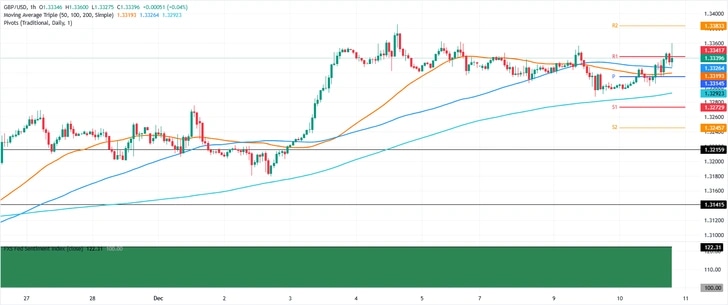The GBP/USD pair trades in negative territory near 1.3365 during the early European trading hours on Thursday, pressured by the rebound in the US Dollar (USD). Nonetheless, the potential downside might be limited after the US Federal Reserve (Fed) delivered a rate cut at its December policy meeting. Traders brace for the US weekly Initial Jobless Claims report, which will be published later on Thursday.