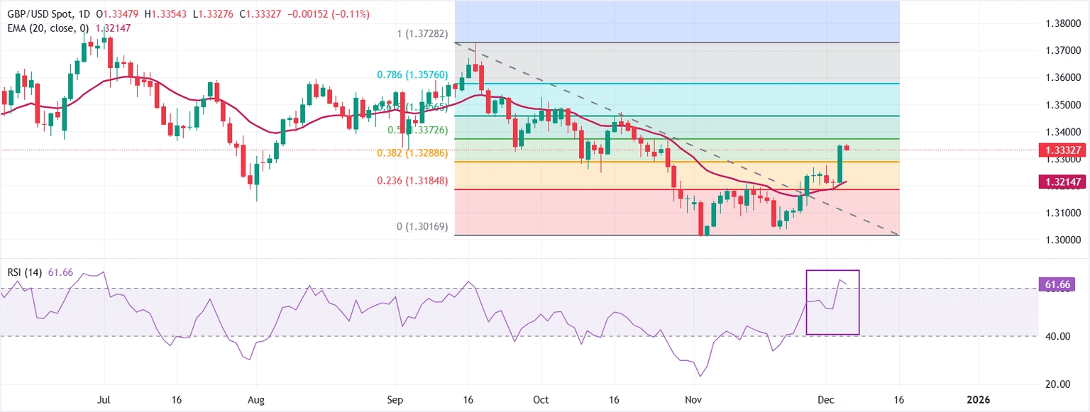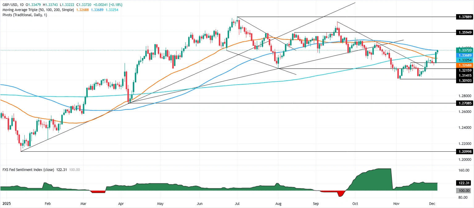 The Pound Sterling (GBP) rises against the US Dollar (USD) during the North American session on Thursday, even though US jobs data suggests that the labor market remains solid, and the expectations that the Federal Reserve (Fed) will cut rates remain high. At the time of writing, the GBP/USD trades at 1.3367, up 0.12%, its highest level since the end of October. Read More...