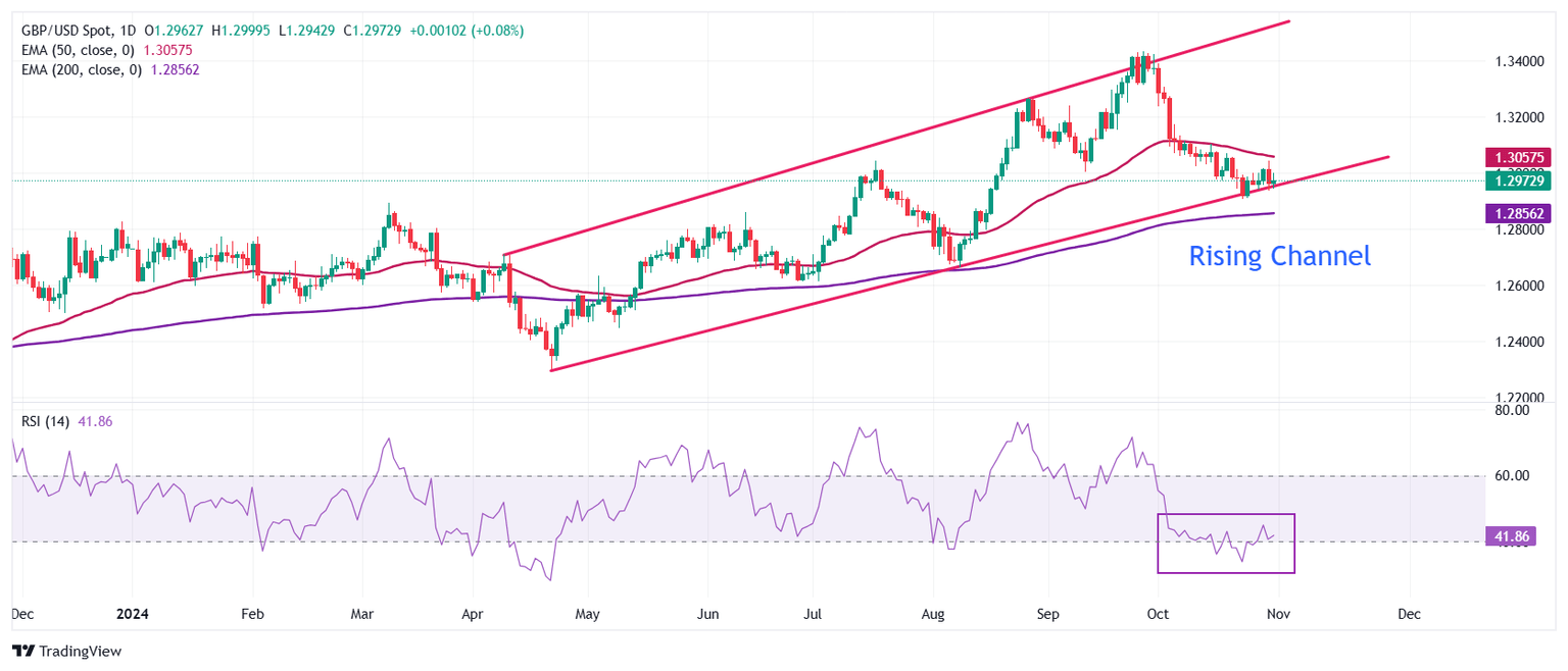 The GBP/USD pair struggles to hold the lower boundary of a Rising Channel chart formation around 1.2900 on the daily time frame.