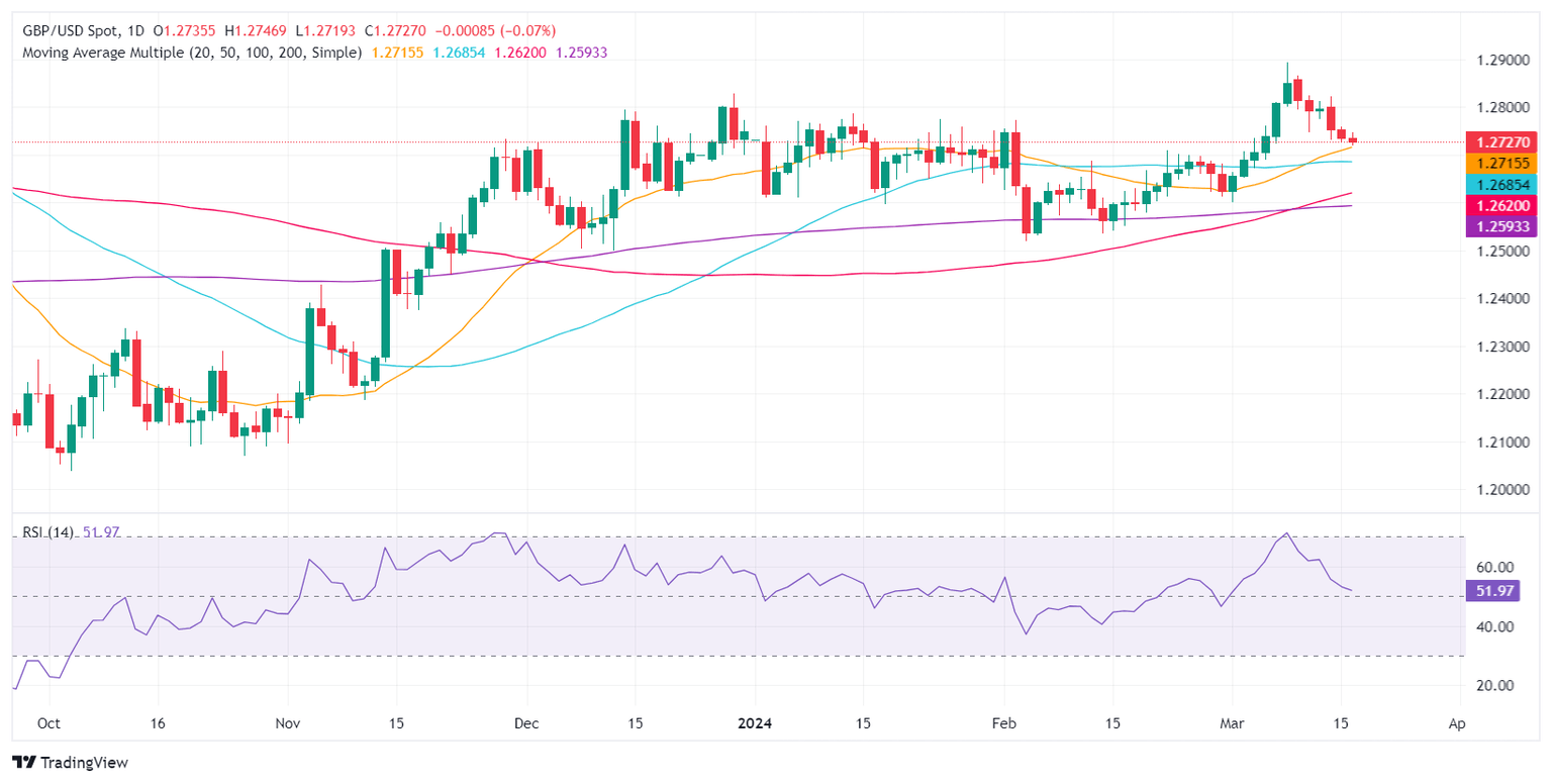 The GBP/USD pair remains under some selling pressure during the early Asian session on Tuesday. The uptick in the US Dollar (USD) above 103.50 and higher US yields provide some support to the major pair. Markets turn cautious ahead of the central bank meetings, including the Federal Reserve (Fed) and Bank of England (BoE) interest rate decisions. At press time, GBP/USD is trading at 1.2726, down 0.02% on the day.