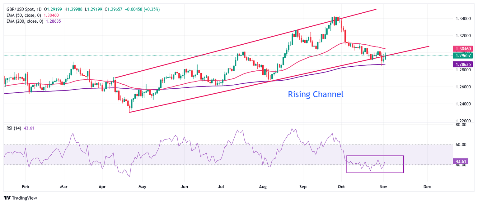 The Pound Sterling (GBP) gains sharply against the US Dollar (USD) in North American trading hours on Monday but continues to struggle near the psychological resistance of 1.3000. The GBP/USD pair aims for a firm footing above the key support of 1.2900 as the US Dollar plunges ahead of the United States (US) presidential election on Tuesday.