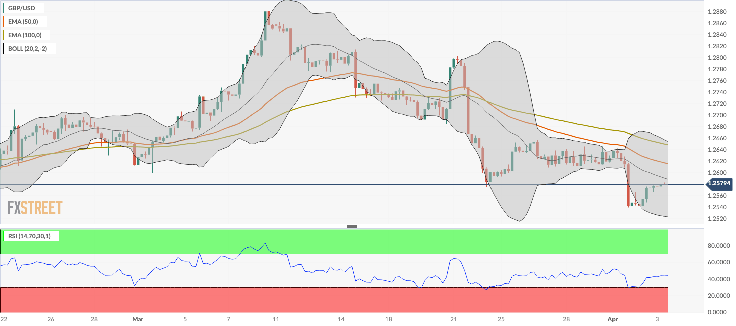 The GBP/USD pair recovers some lost ground and currently trades around 1.2580 on Wednesday during the early European session. The decline of the USD Index (DXY) and the dismal market mood in the UK economy act as a tailwind for the major pair. Later on Wednesday, the ADP Employment Change and the ISM Services PMI will be due. Also, Federal Reserve (Fed) Chair Jerome Powell's speech will be a closely watched event.