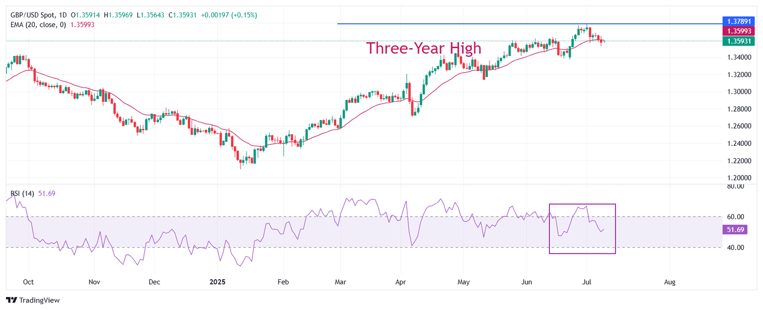 The Pound Sterling trades in a limited range around 1.3600 against the US Dollar on Wednesday. The GBP/USD pair wobbles around the 20-day Exponential Moving Average (EMA) near 1.3590, suggesting that the near-term trend is uncertain.