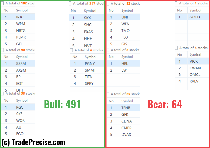 The bullish vs. bearish setup is 491 to 64 from the screenshot of my stock screener below.